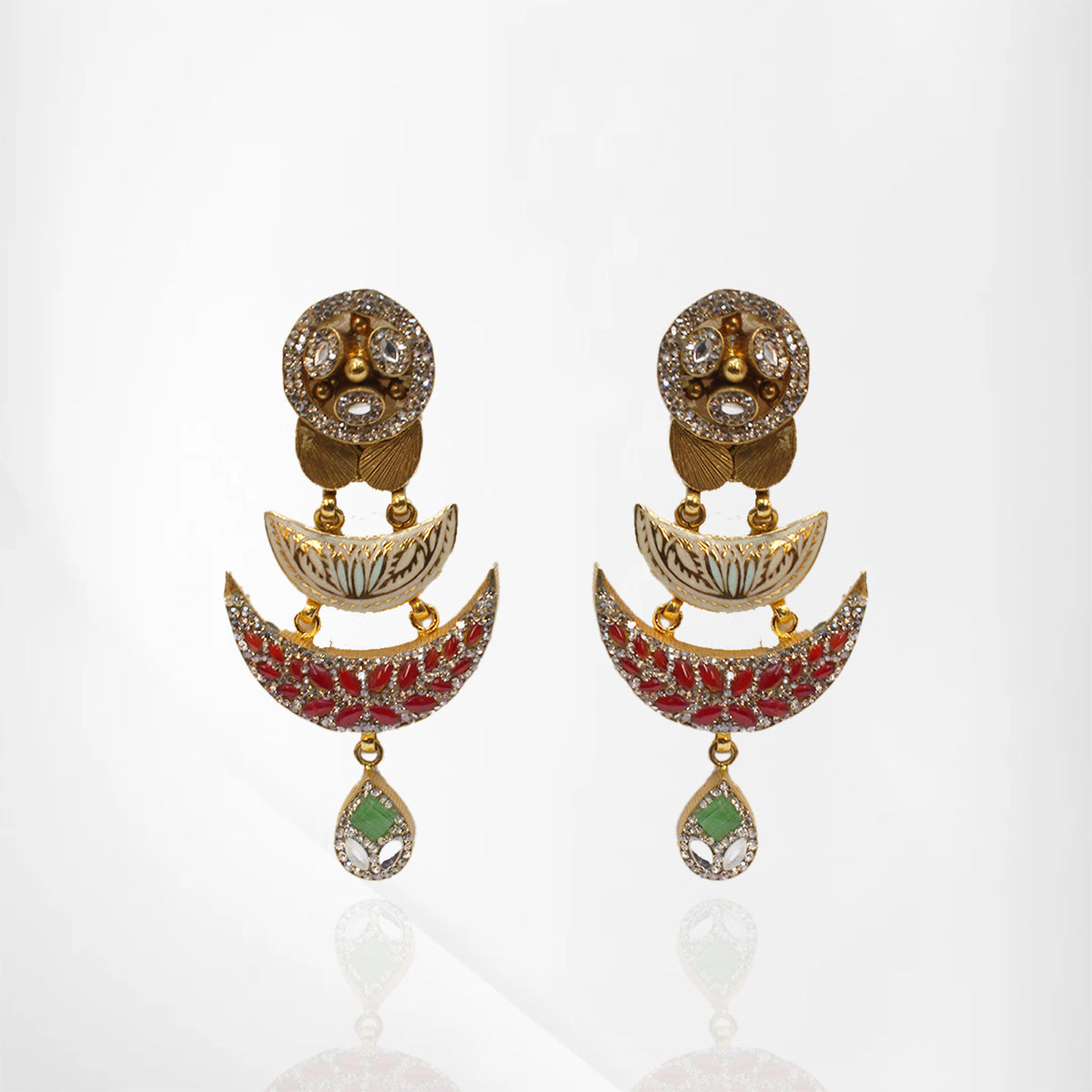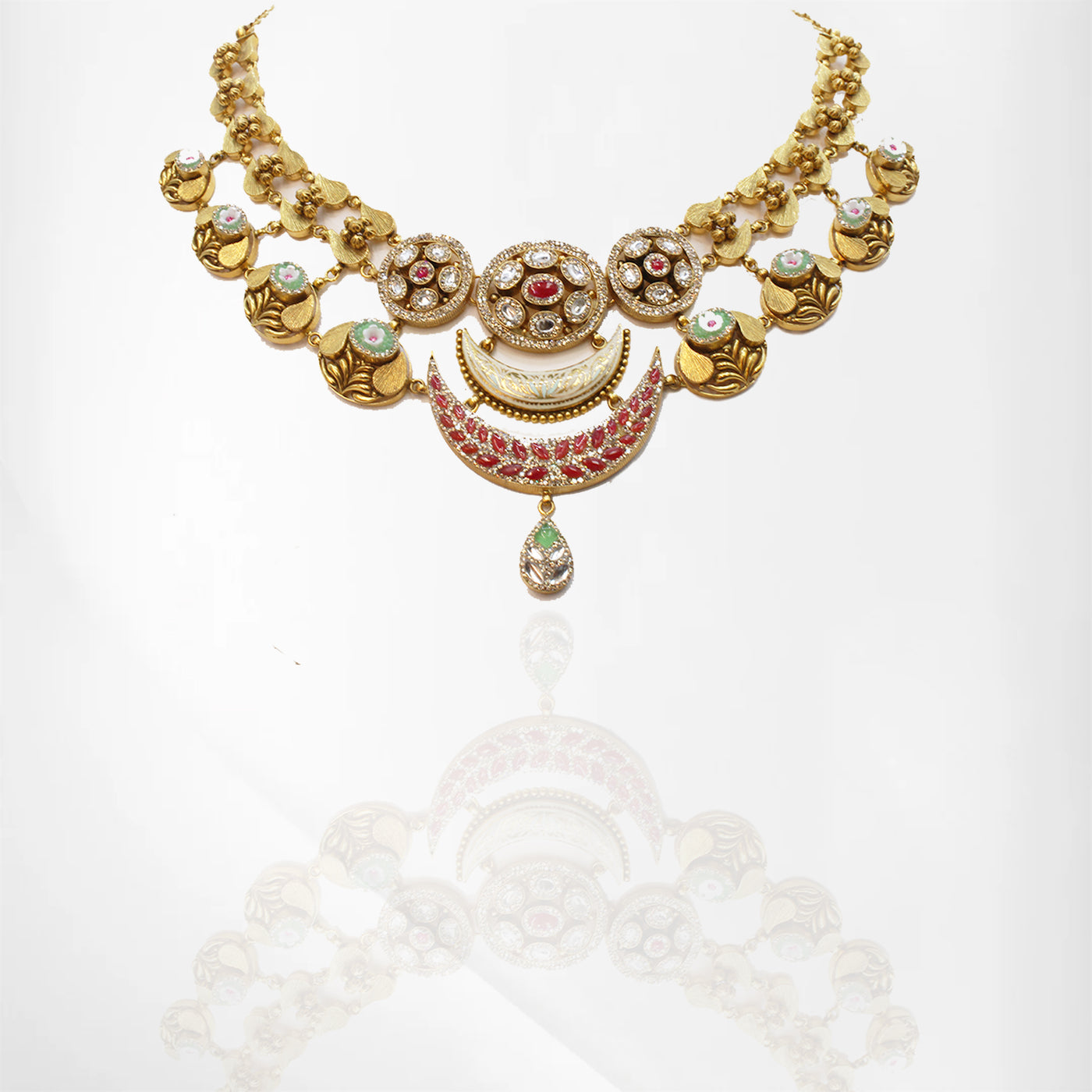 Antique Moon-Inspired Kundan, Ruby & Emerald Set with Cubic Zirconia