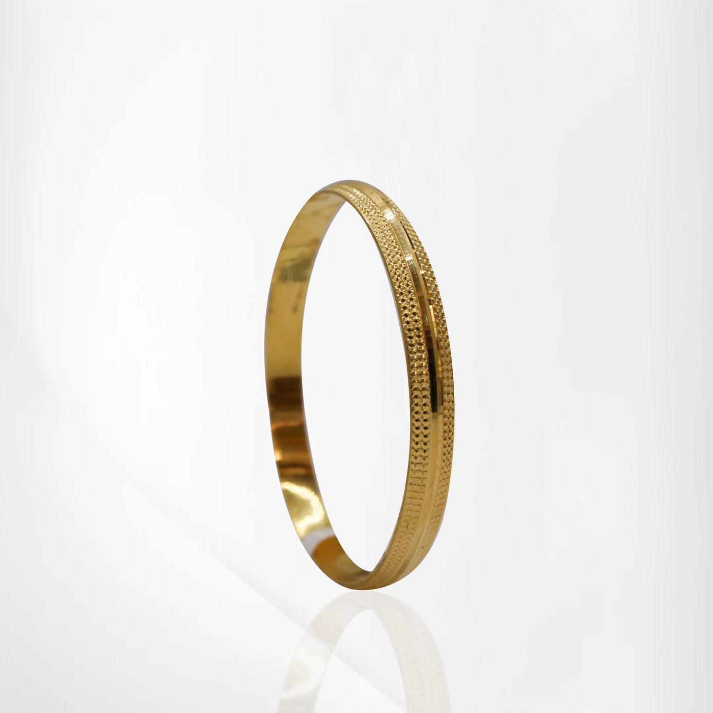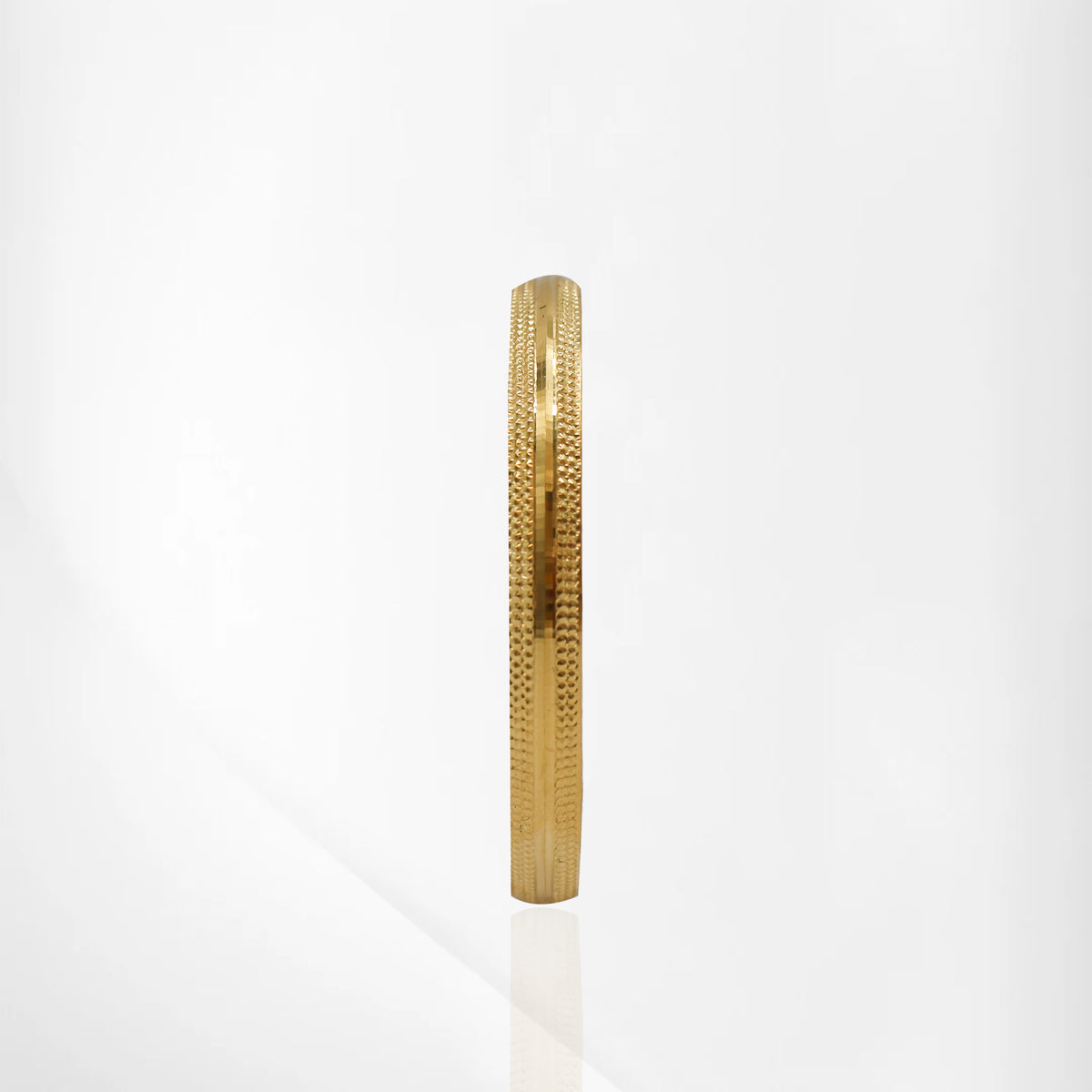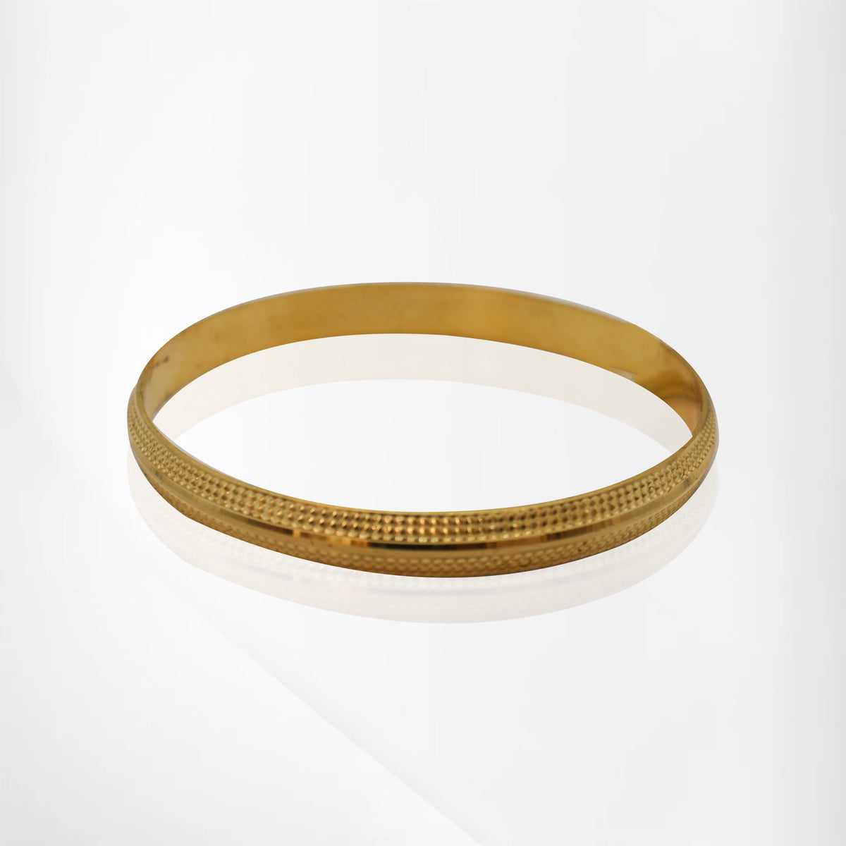 Expertly crafted in gold, this baby kada showcases a smooth plain center accented with delicate dotted patterns on both sides. Its refined design strikes a perfect balance between simplicity and charm. Lightweight and comfortable, it’s ideal for everyday wear or as a thoughtful gift. SKU-8598